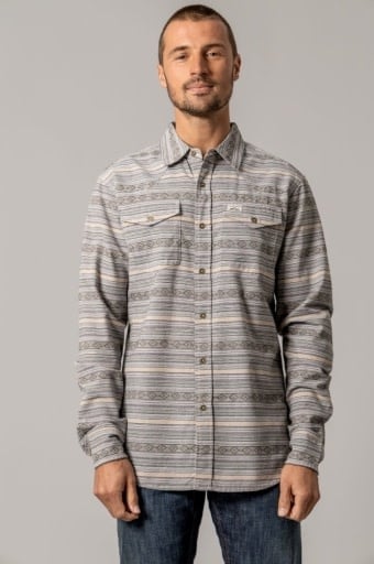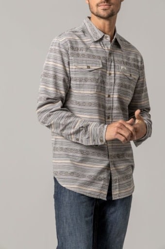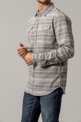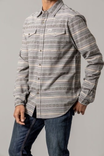The fit is relaxed and long, and the button front closure and matching button pockets make this shirt comfortable and secure. This shirt is durable without sacrificing style.