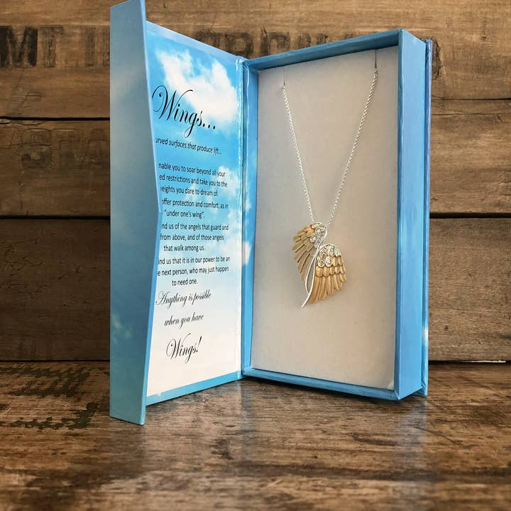 Angel Wings Necklace Two Tone in Box/Jewelry