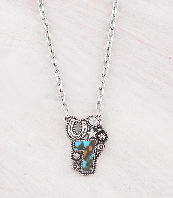 Western Stone Cross Pendant Necklace