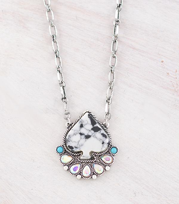 Western Ace of Spades Semi Stone Pendant Necklace