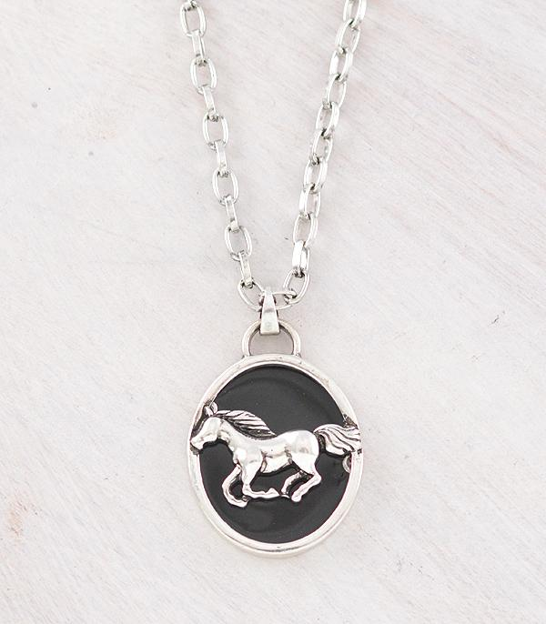 Product Details: Horse pendant necklace; approximately 18" length; pendant measures about 1.25" x 1.4"; lobster claw closure with extender hooks; lead & nickel compliant; lightweight and comfortable for all-day wear.