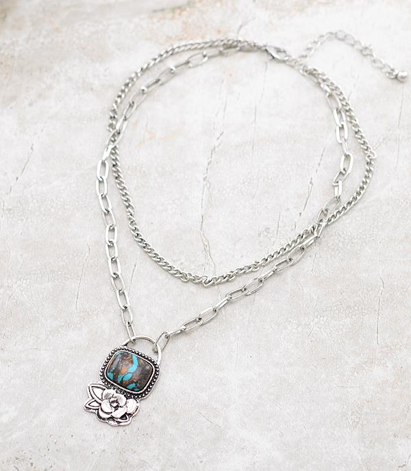 Western Turquoise Pendant Layer Chain Necklace