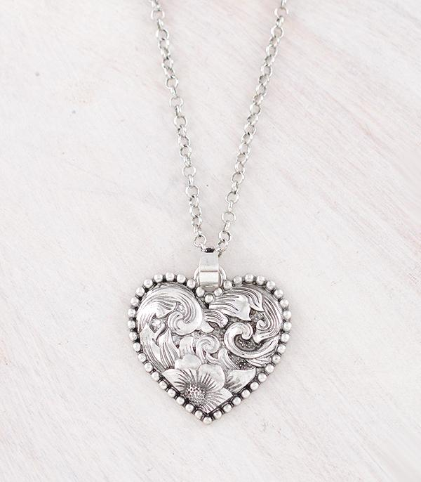 Floral Tooling Heart Necklace