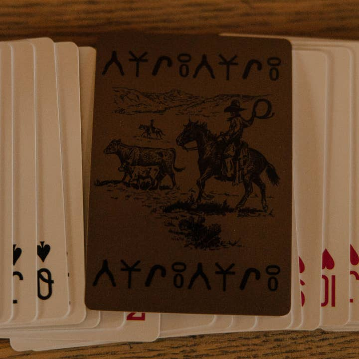 Saddle up for a deck that captures the spirit of the Old West, featuring rich brown tones and striking artwork by Blu Dornan of a cowboy on horseback working cattle. Framed with authentic brand symbols and ranch-inspired imagery, these playing cards bring a sense of heritage and grit to every hand you deal. Perfect for game night, magic tricks, or display, this deck delivers genuine cowboy culture in a form that’s both functional and collectible.
