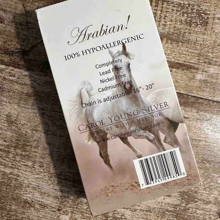 A silver-tone horseshoe sparkles with rust-colored cubic zirconia stones, framed by an array of pastel flowers and soft green leaves that give this piece a gentle boho feel. The floral detailing adds unexpected beauty and depth, making the design even more striking in person than photos can capture. Finished with a meaningful keepsake box honoring the special virtues of the Arabian horse, this necklace is a heartfelt way for Arabian horse lovers to proudly show their devotion.