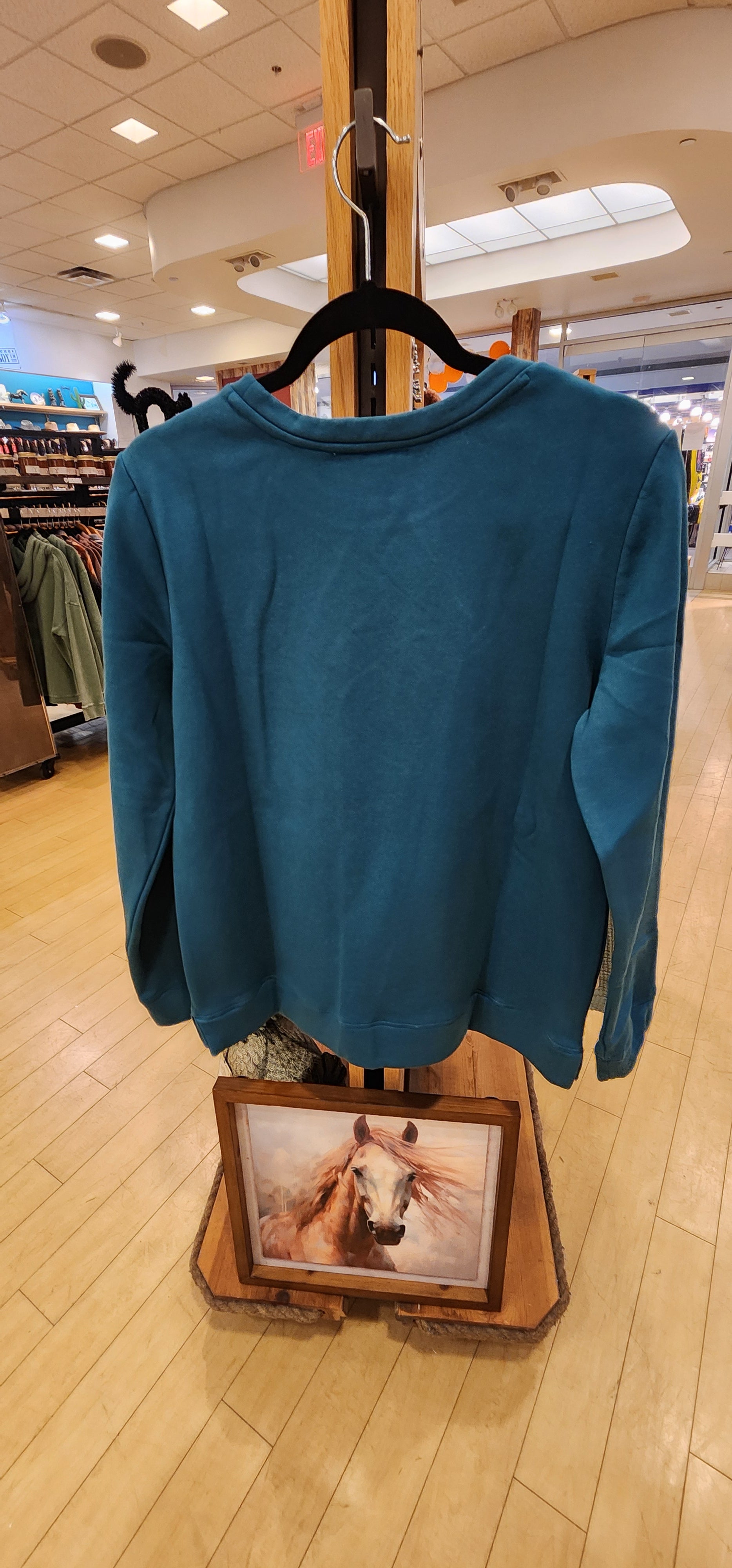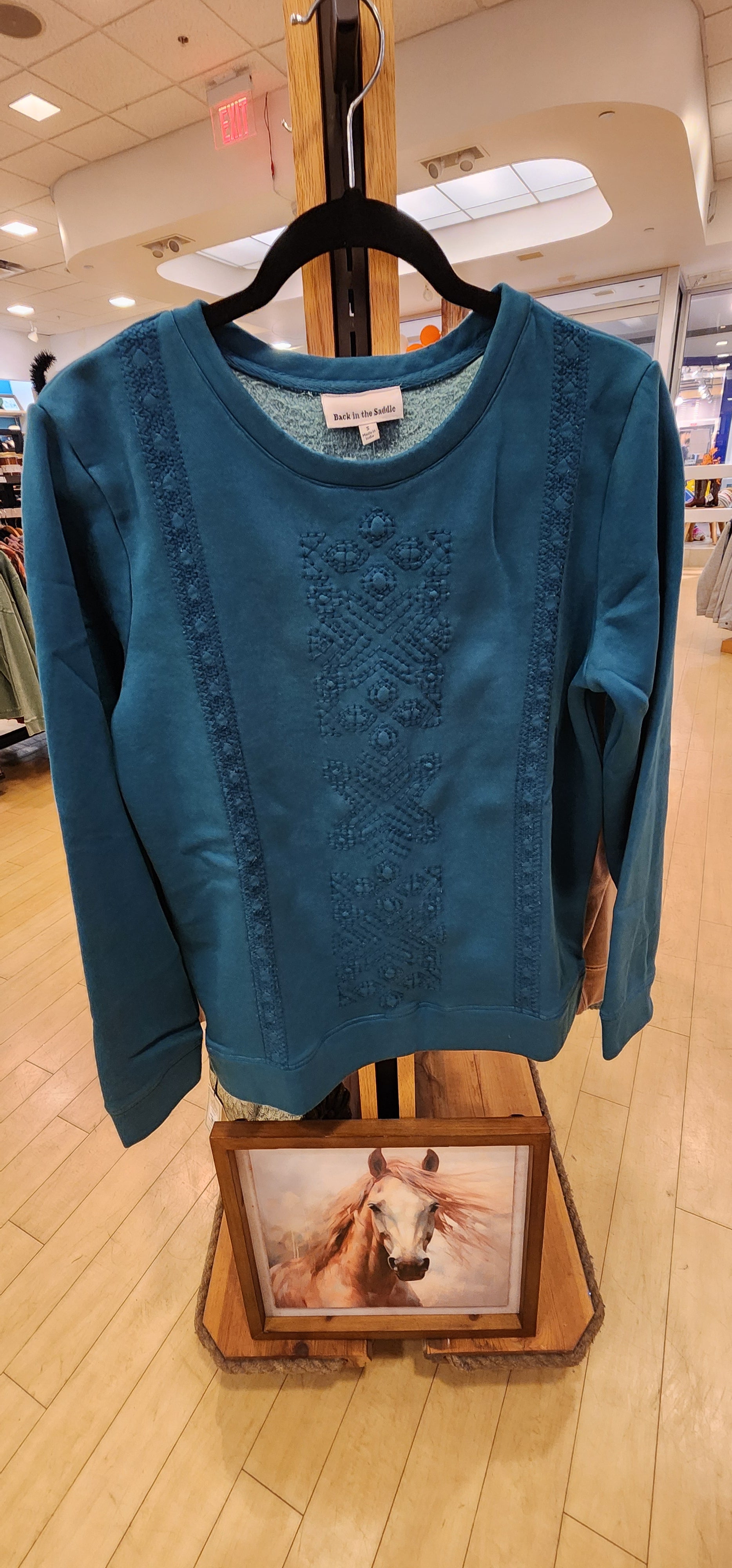 Soft, cozy, and adorned with subtle Southwestern-style embroidery, this Back In The Saddle tonal sweatshirt delivers relaxed comfort with classic Western character. The balanced cotton-poly blend feels breathable yet warm, perfect for arena mornings or casual weekend wear. Slip it on and feel wrapped in easy-going style that speaks to your Western roots.