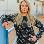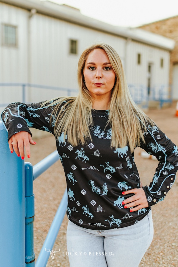 Soft, stylish, and infused with classic Western charm, this Western Printed Pearl Snap Cuff top from Lucky and Blessed delivers breathable comfort with standout design. The lightweight stretch-knit and bold printed pattern make it perfect for rodeo nights, weekend outings, and everyday wear. Slip it on and feel that easy-going cowgirl confidence that turns style into attitude.