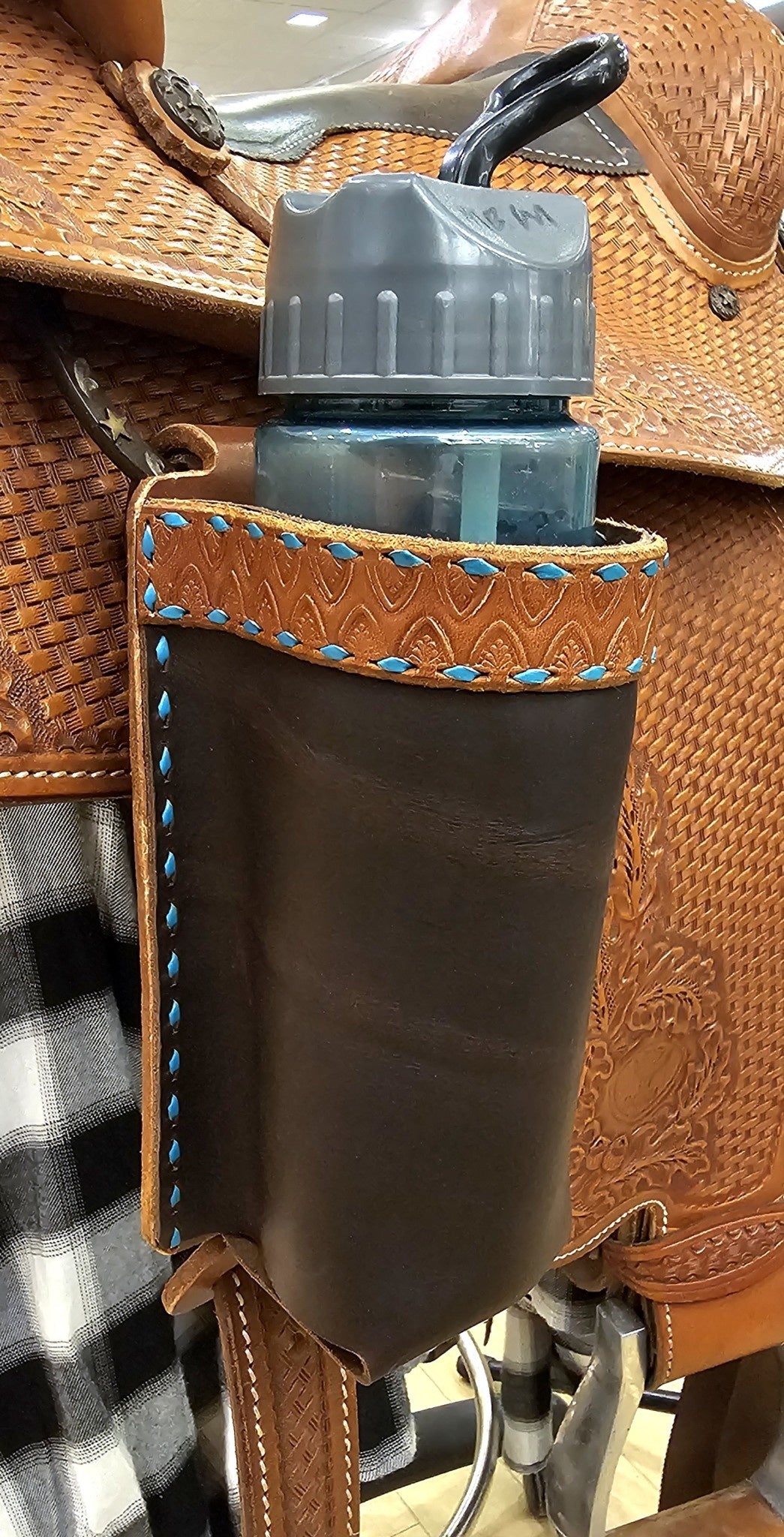 Keep hydration within easy reach on every ride with our Handmade Leather Billet Bottle Holder, crafted in our shop for riders who want convenience without sacrificing durability or Western style. Designed to attach securely to your saddle’s rear billet strap, this holder keeps your water bottle or electrolyte drink snug and steady on the trail. Made from quality leather and built to withstand long rides, weather, and everyday use, it’s a practical, good-looking upgrade for any saddle setup.