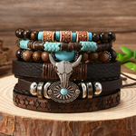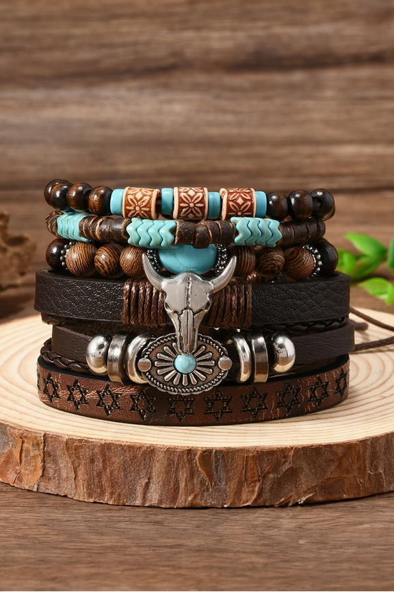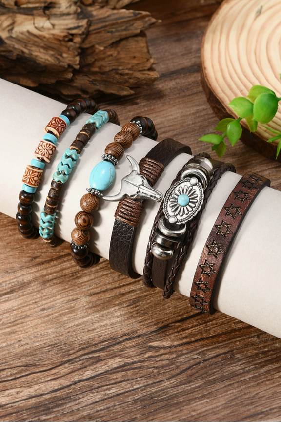 6 Piece Western Bull Skull Turquoise Beading Bracelet