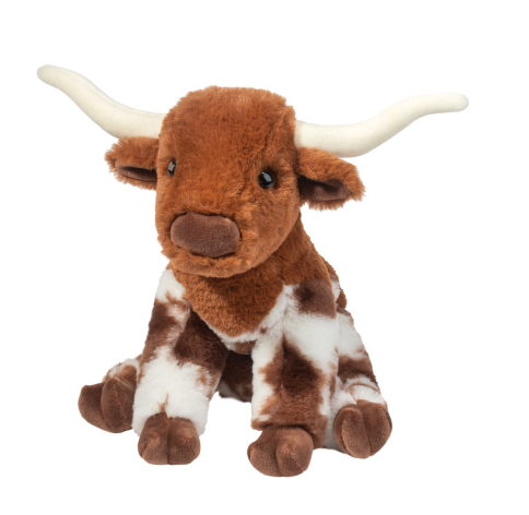 Bixbie the Soft Longhorn Bull stuffed animal is a handsome new addition to the Douglas Ranch! We’ve selected materials so huggable, all the cowboys agree, Bixbie is the cuddliest Longhorn in the entire Wild West! Featuring a brown spotted coat and the widespread horns of the Texas Longhorn breed, Bixbie is an accurate depiction of the real life thing. Gently weighted with beans and stuffed with silky polyester fill, this sweet faced plush bull will flop appealingly into your hands and lend himself well to every imaginative Western adventure. A standout amongst plush cattle everywhere, Bixbie the Longhorn will wow and impress with his ultra soft feel and realistic details!