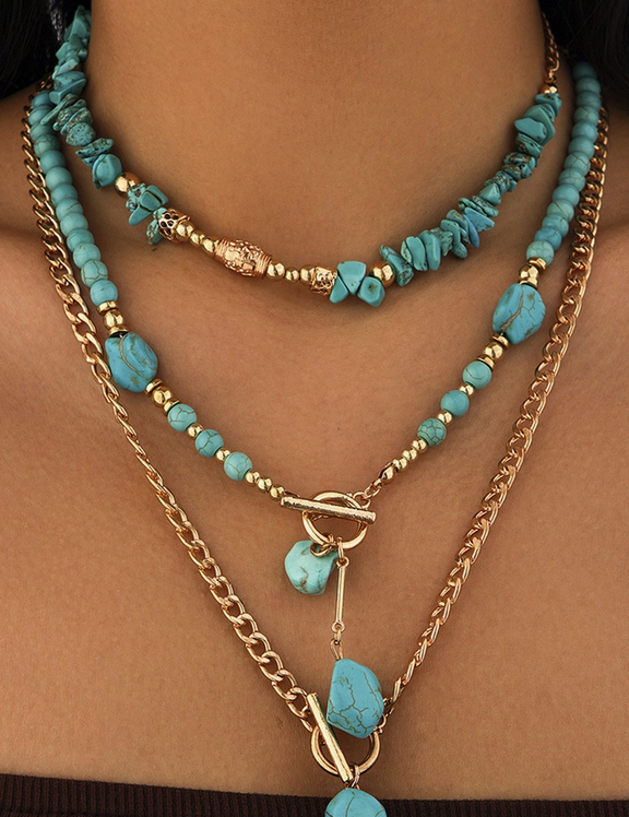 Plated Toggle Clasp Turquoise Cable Chain Layered Necklace