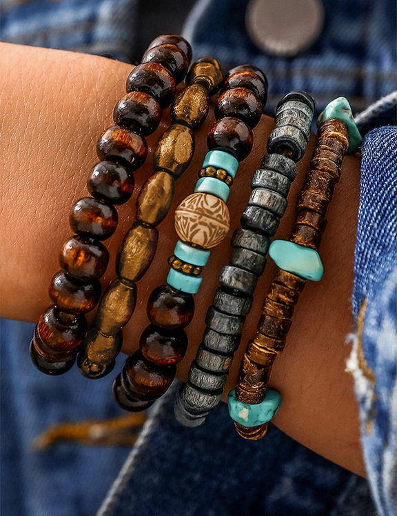 Boho Turquoise Wooden Beaded Multi Layer Bracelet