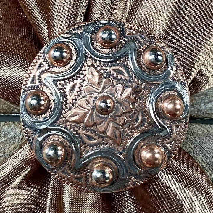Copper western concho with intricate floral etched detailing