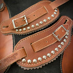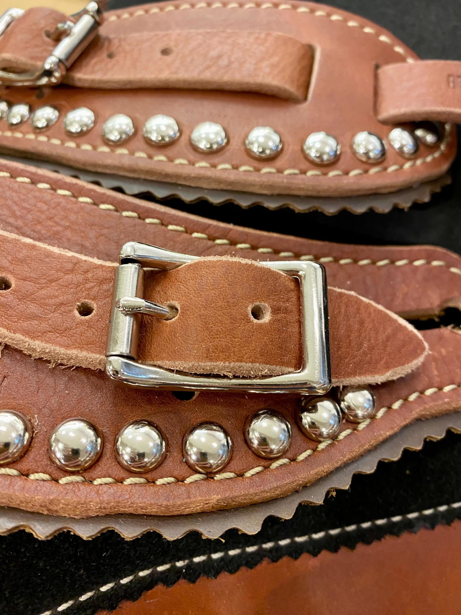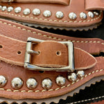 This design, taken from an antique original from Montana, will give you the look of the old west and put a little swagger in your step! Our pride of workmanship and attention to detail in these custom spur straps will give you many years of fine service.