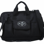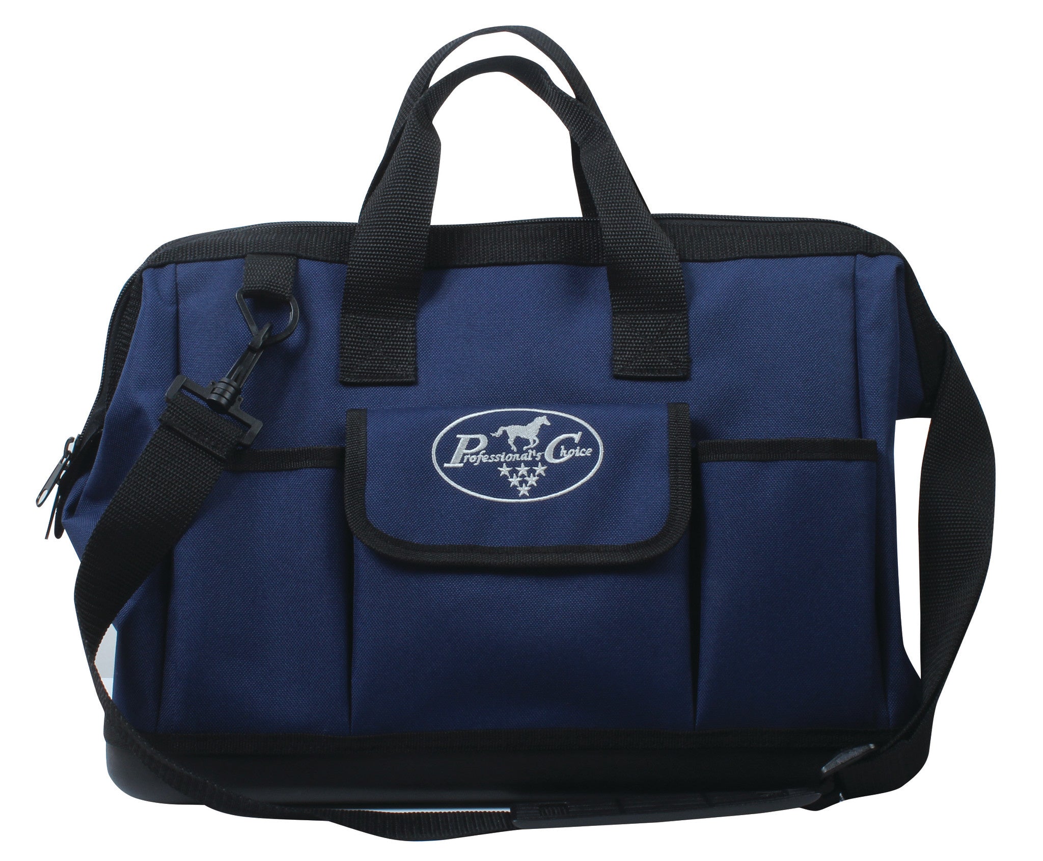 Rubber bottom for extra durability. Several outside pockets, one includes a hook and loop closure.