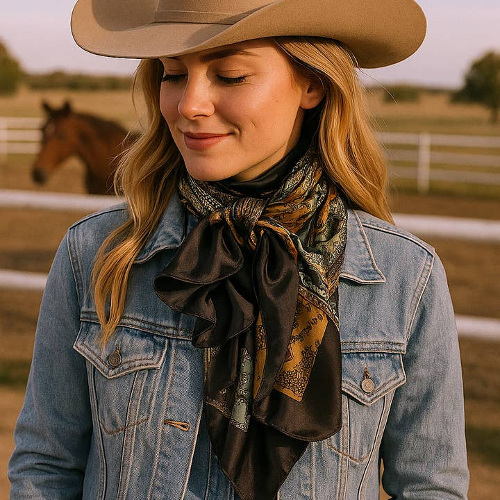 35X35 Tan Brown Polka Dot & Paisley Wild Rag Scarf