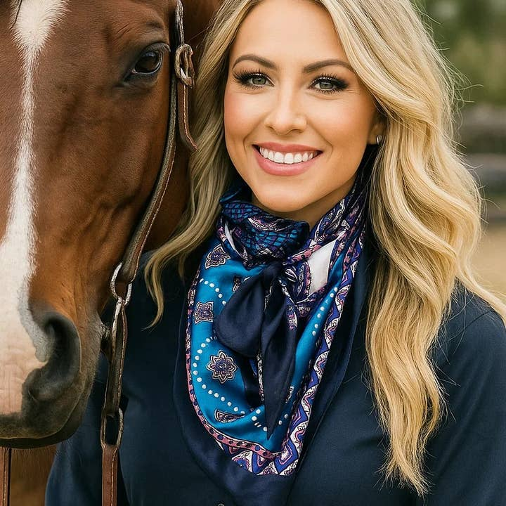 Vibrant blue, pink, and purple hues swirl together in a timeless paisley pattern that instantly catches the eye. The silky-soft fabric drapes smoothly, creating clean knots and an effortless Western finish. This classic wild rag adds a bold pop of color that brightens any outfit, whether you’re dressing up denim or heading out for a night on the town.