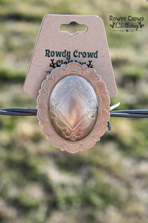 Feel the smooth, cool weight of this Rowdy Crowd concho slide as it glides onto your favorite wild rag, scarf, or tee, instantly adding Western character with effortless style. The engraved detailing brings eye-catching texture, while the sturdy metal design keeps your accessory securely in place. Created for those who love bold, expressive touches, this slide adds personality and polish to every outfit—from rodeo nights to everyday wear.