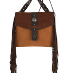 Ladies Crossbody Tan Suede With Fringe