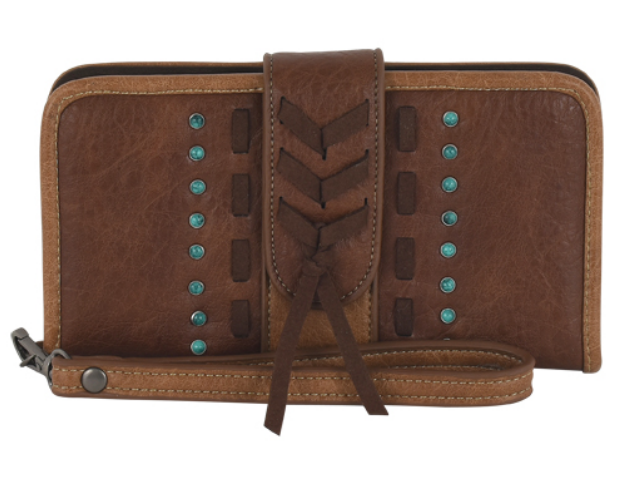 Justin Slim Wallet Tan W/Chevron Stitch and Concho