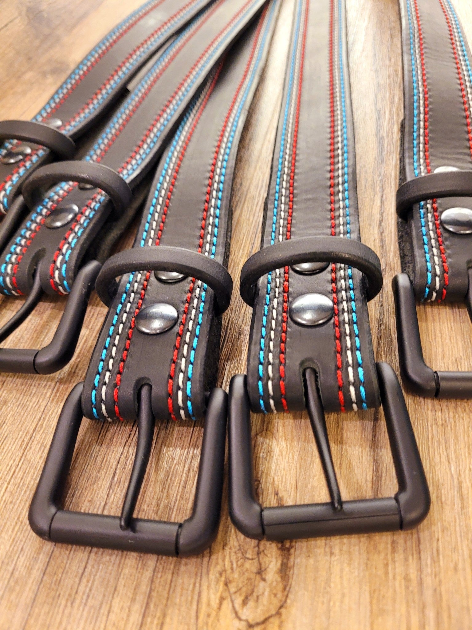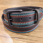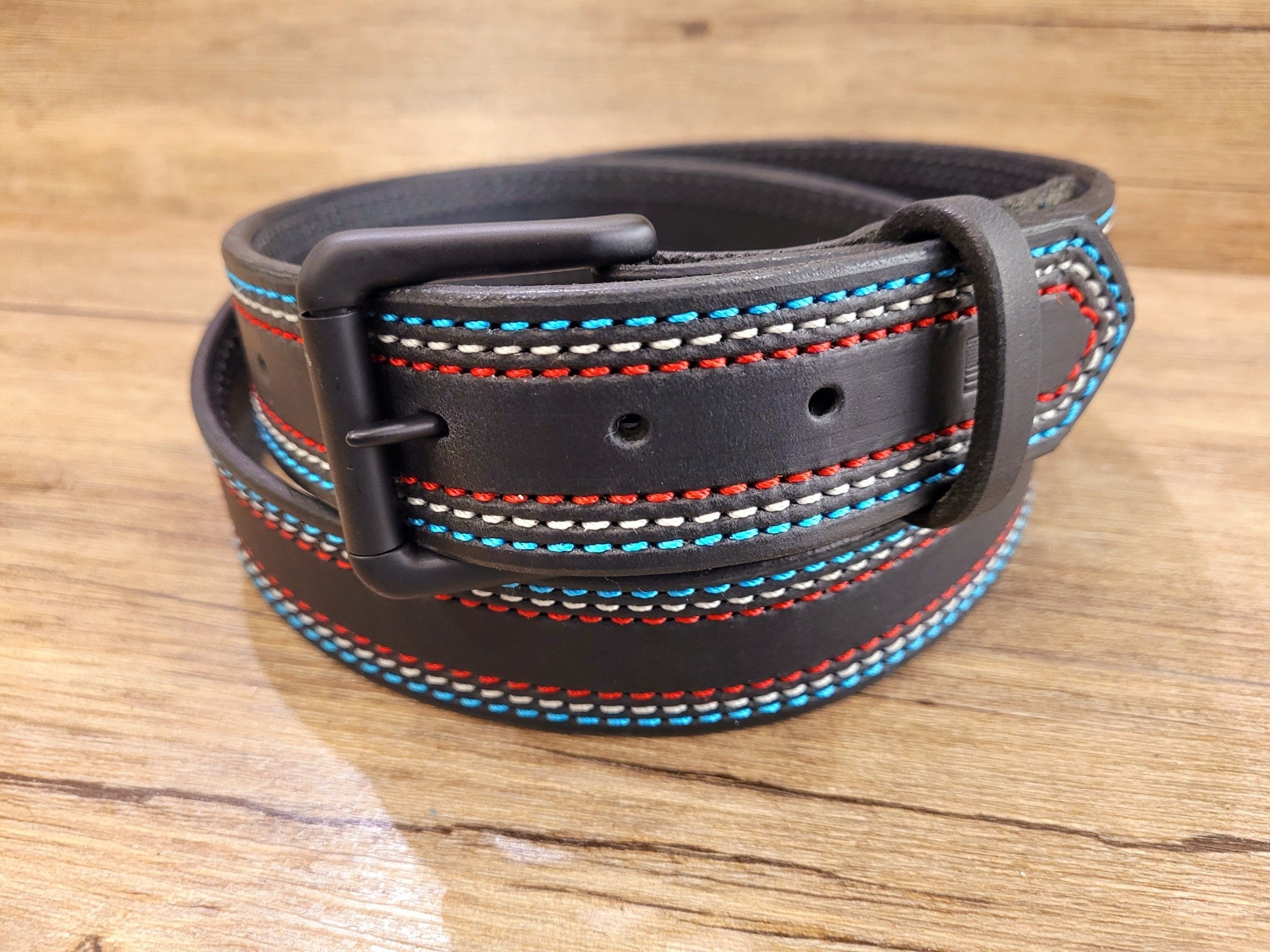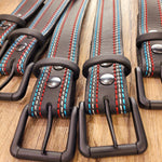 The Beyond the Barn Women's Red White Blue Belt BTB is a handcrafted leather belt featuring patriotic stitching!