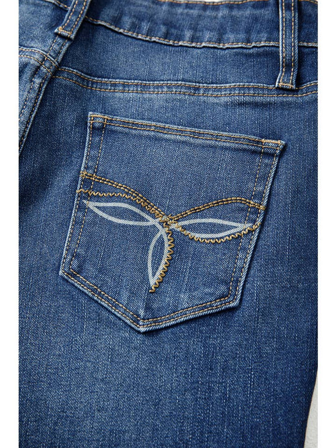 Design: Contrast Western topstitching, reinforced patched back pockets, five-pocket functional design