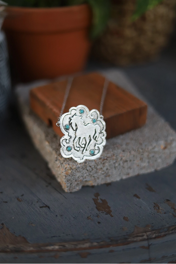 Layered Metal Horse Silhouette Necklace