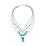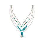 A vibrant mix of turquoise, coral, and malachite stones brings rich texture and earthy color to this layered necklace, creating a sensory feast of natural beauty. Each strand adds depth and movement, giving the piece a dynamic, artisan-crafted feel. Let this necklace be your statement of spirit—stunning, soulful, and ready to elevate any look.