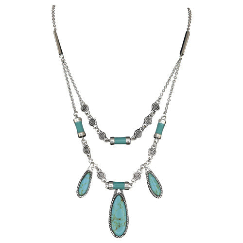 Justin Ladies Necklace 2 Strand Turquoise Stone Pendants