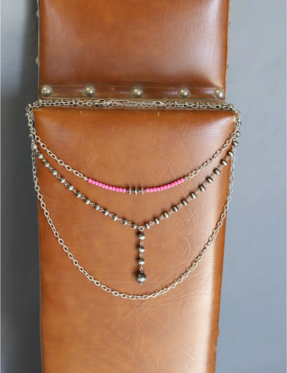 Pink Triple Layer Necklace w/ Navajo Pearls Necklace