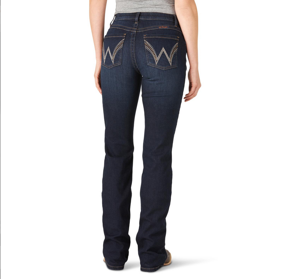 The Wrangler Q-Baby Ultimate Riding Jean in Avery blends a smooth, flexible feel with the stay-put security riders rely on. Its mid-rise cut, no-gap waistband, and stretchy denim move seamlessly from saddle time to daily wear.