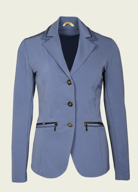 - This fitted show jacket, with it's flattering shape and sparking details, will be a standout in any show arena.