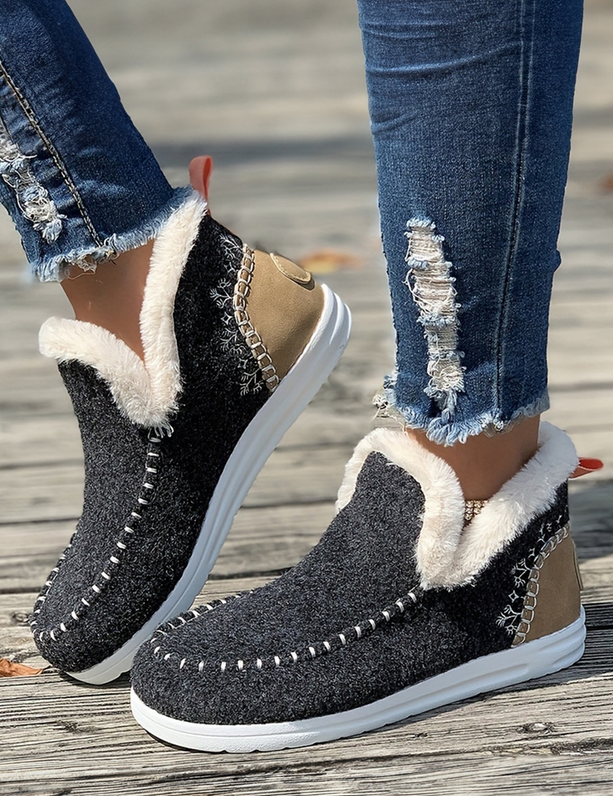 Stitching Patchwork Plush Lined Anklet Boots Grey