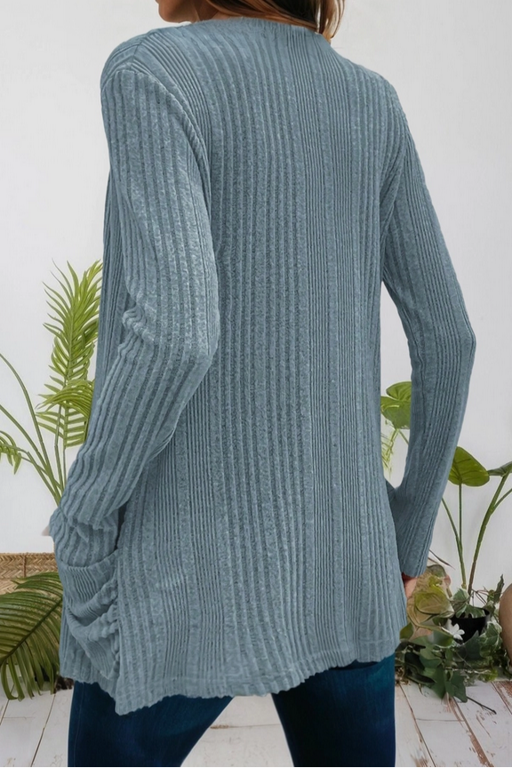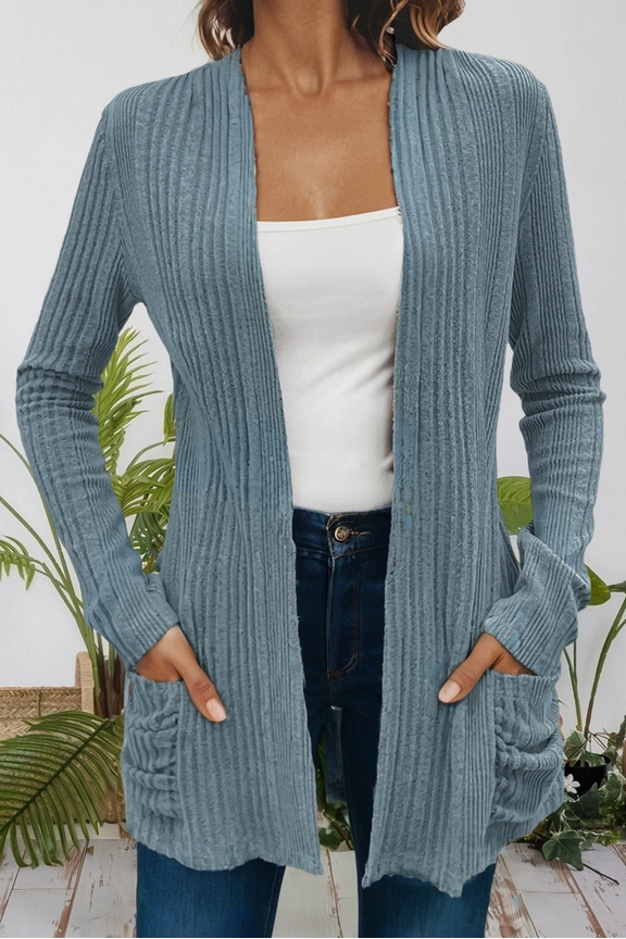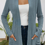 Wrap yourself in effortless style with the 66disco Women's Ribbed Open Front Knitted Top. Crafted in a soft, breathable knit, this stone blue layering piece features a flattering open front, cozy ribbed texture, and functional front pockets for everyday ease. Perfect for transitional weather or casual layering, it’s a wardrobe essential that blends comfort with timeless charm.