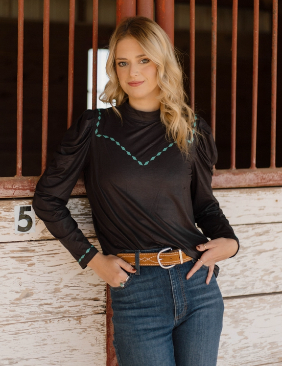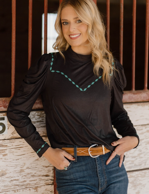 Cowgirl Motif Embroidered Linen Shirt-Camel