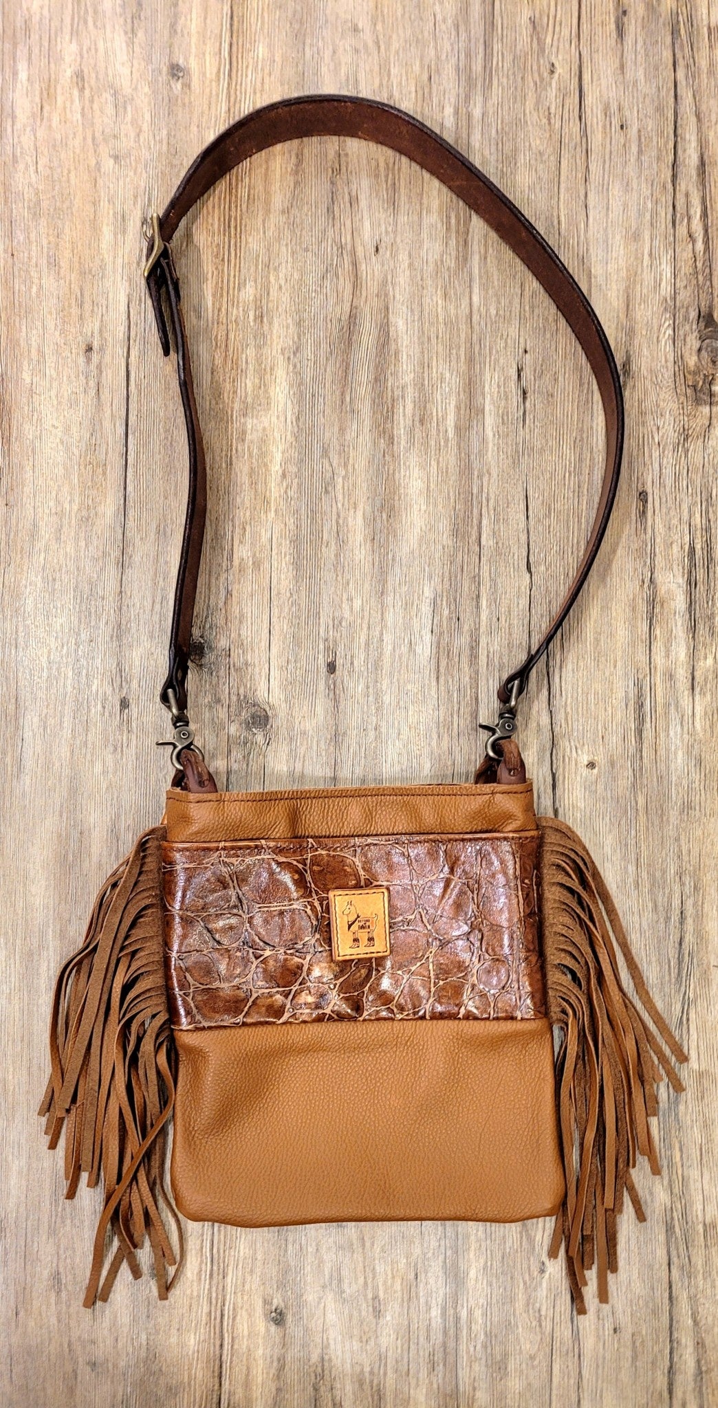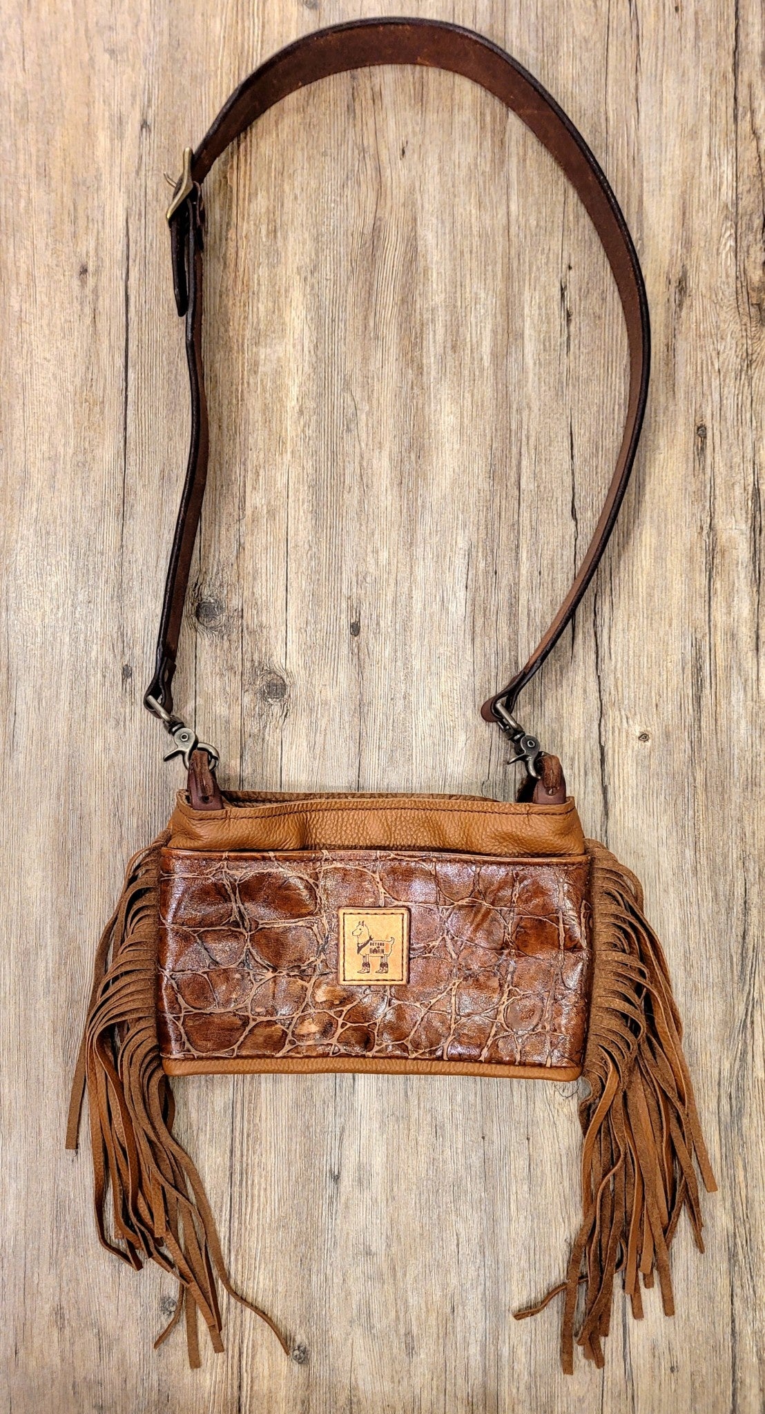 Rich, hand-tooled leather meets bold gator embossing in this dual-purpose purse that blends rugged texture with refined Western charm. The supple feel and artisan detailing create a standout piece that looks as good slid over the shoulder as it does carried as a clutch. Elevate your everyday carry with a bag that turns heads and tells a story.