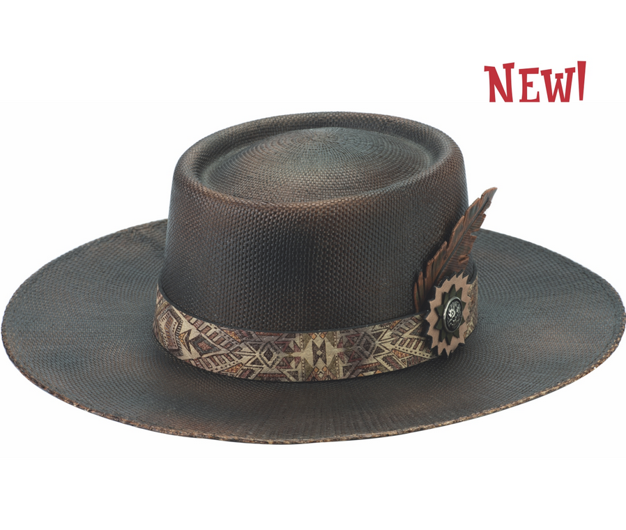 This Bullhide “Unusual” Bangora straw hat offers crisp, breathable texture with a lightweight feel that keeps you cool under the sun. Its gambler crown and distinctive trim deliver visual edge — the kind that quietly steals the spotlight.