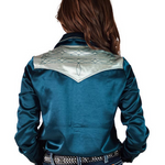 Dark Teal & Mint Satin Pullover Button Up with Bootstitch