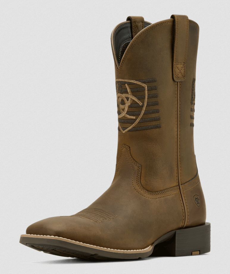 Step into the Ariat Men’s Sport Freedom Cowboy Boot – Distressed Brown and feel the rugged leather paired with bold Americana stitching that stands out with every stride. Inside, a cushioned insole and supportive midsole keep your feet comfortable from early mornings to long nights in the saddle. Enjoy the proud patriotic spirit and dependable Ariat performance built into a boot ready for work, leisure, and everything in between.