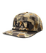 Ariat mens cap by M&F Western Products. Tan camo front panel and bill with a 3D embroidery Ariat name and shield. Black brim rope accent. Tan camo fabric back with a snap back closure for that perfect fit.