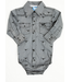 Start 'em young with bold Western style in the Cowboy Hardware Infant Skull Scatter Long Sleeve Romper. Featuring an all-over skull pattern on a charcoal base, this romper brings pint-sized attitude to your little outlaw’s wardrobe. Soft, durable, and easy to snap on and off, it’s built for comfort and cowboy charm from nap time to playtime.