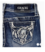 The Grace in LA girls and little girls' jeans come in different fits, we have bootcut, skinny, flare. The jeans are unique detailed with embroidery, western stich, and accent sequins. All natural washes with natural hand sanding and whickering. These jeans make every girl and little girl feel special and comfortable.